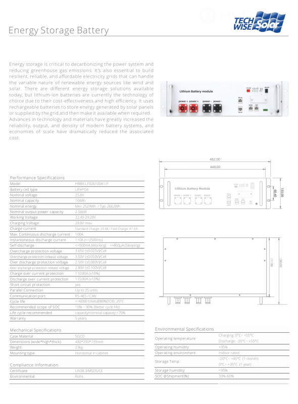 25.6 فولت 104 أمبير/الساعة 2.7 كيلو وات في الساعة